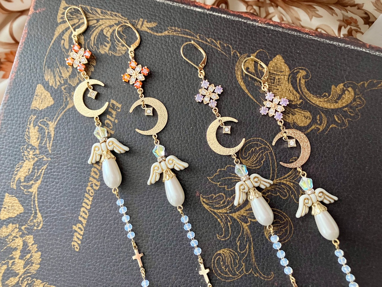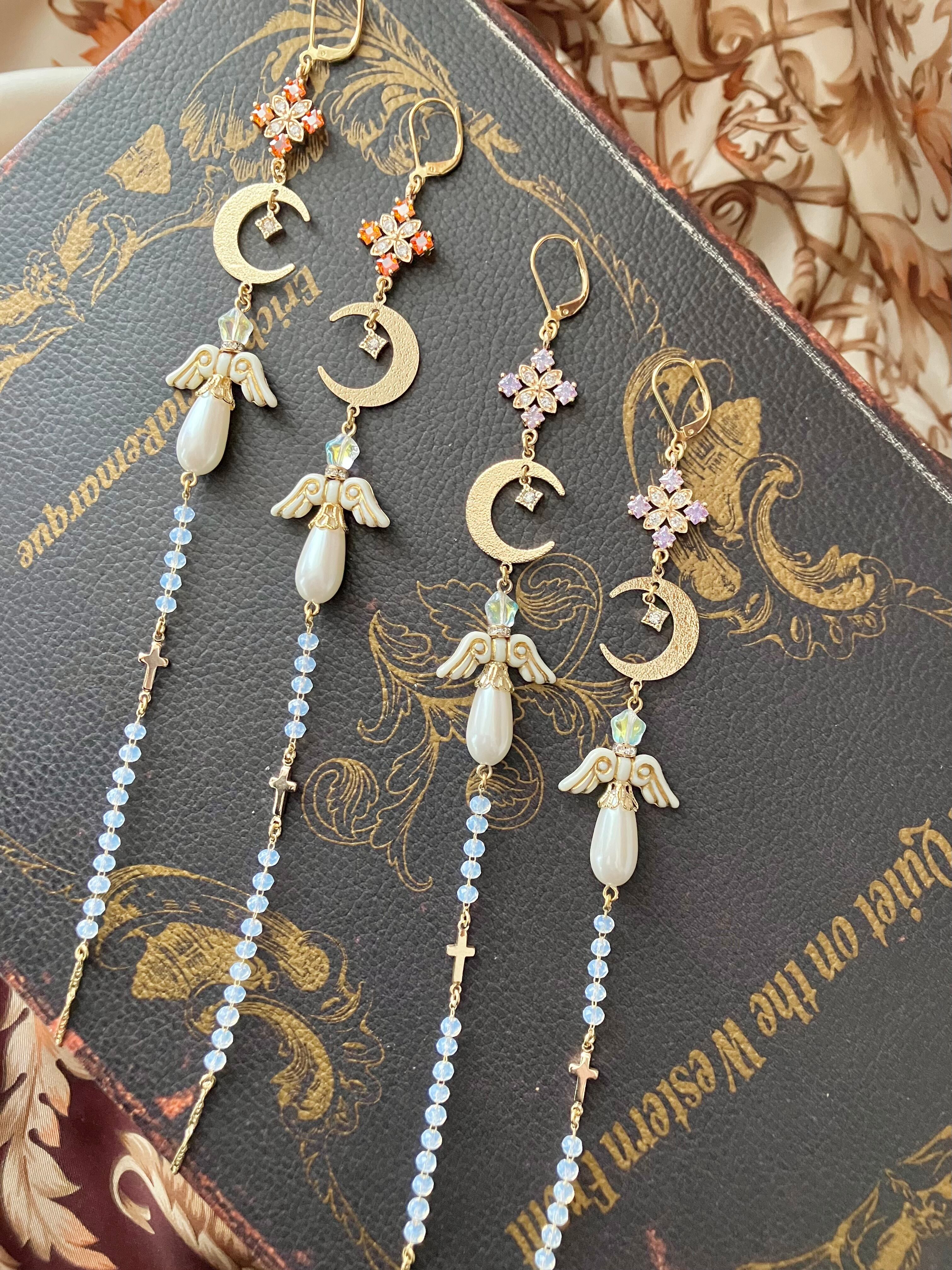 ゴールドに月や天使風の雫パーツなどを合わせたゴージャスなマルチチェーンです。