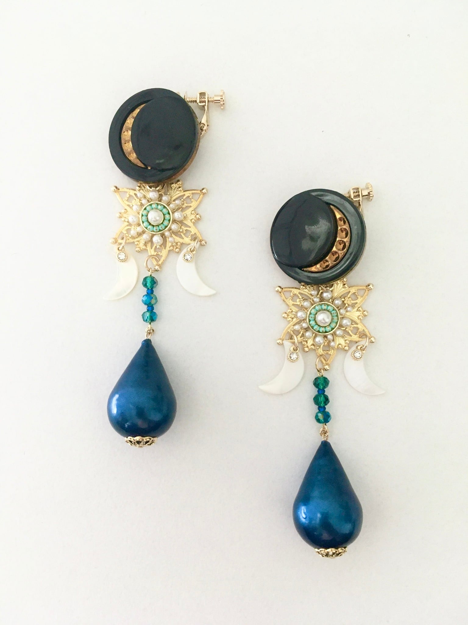奇跡の涙石イヤリング(グリーン×ムーン)