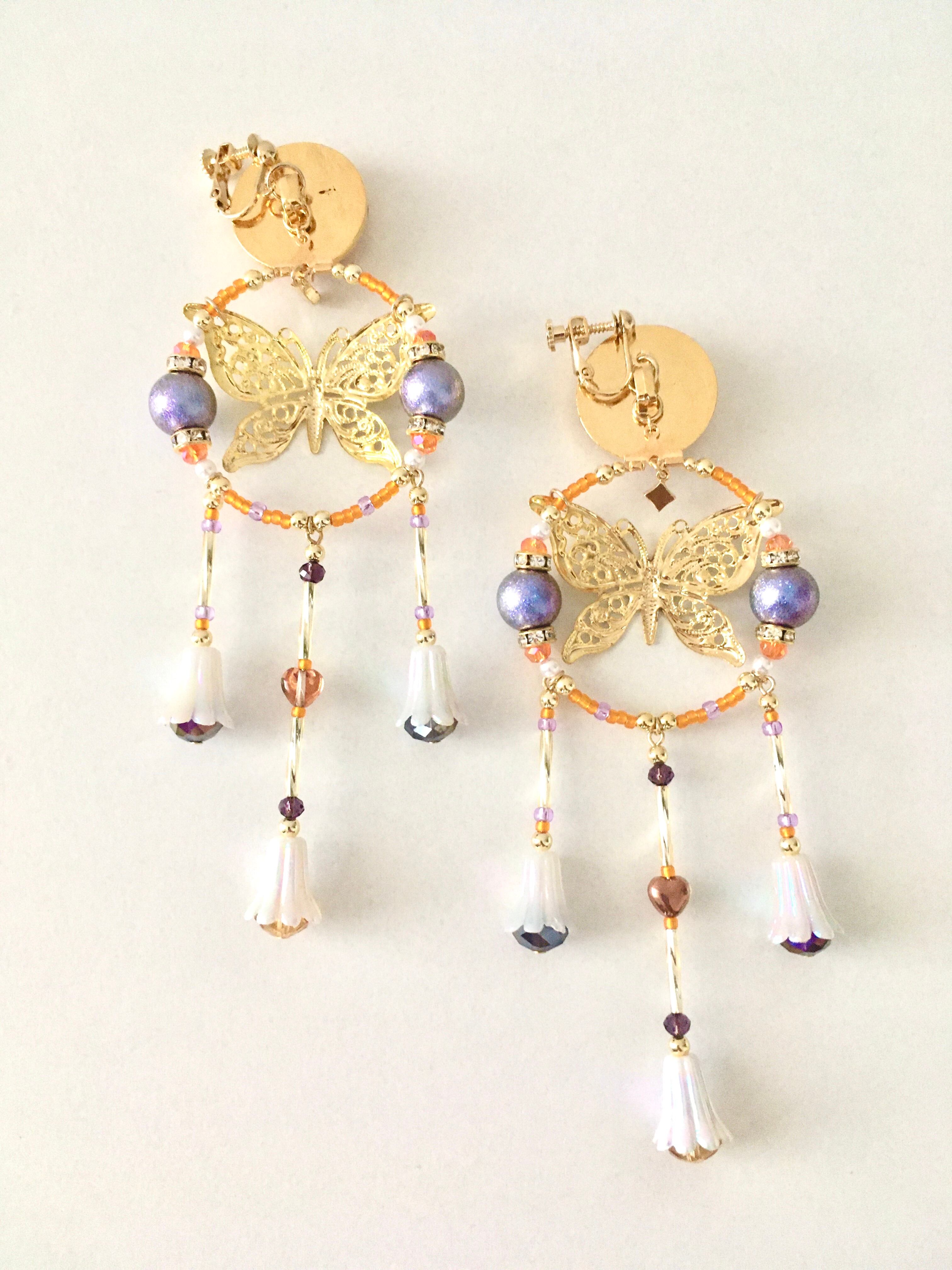 輪廻飛蝶のイヤリング(オレンジ×パープル)