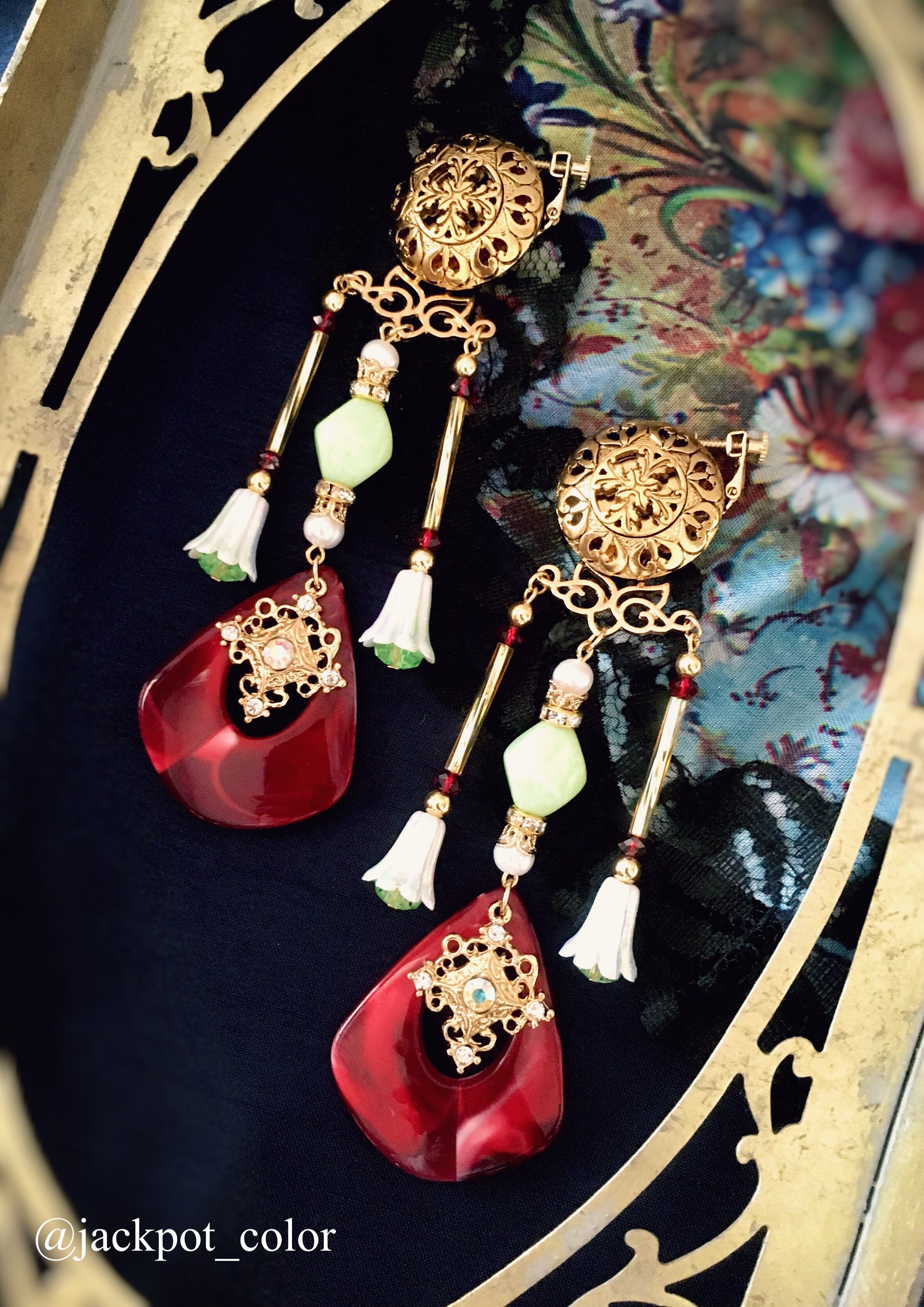 海外輸入品等のパーツも使用しています。確認して製作していますが、天然ビーズの差異、小キズや曇り、塗装の小さな浮き、欠け等は素材の持つ魅力としてご理解下さいませ。
