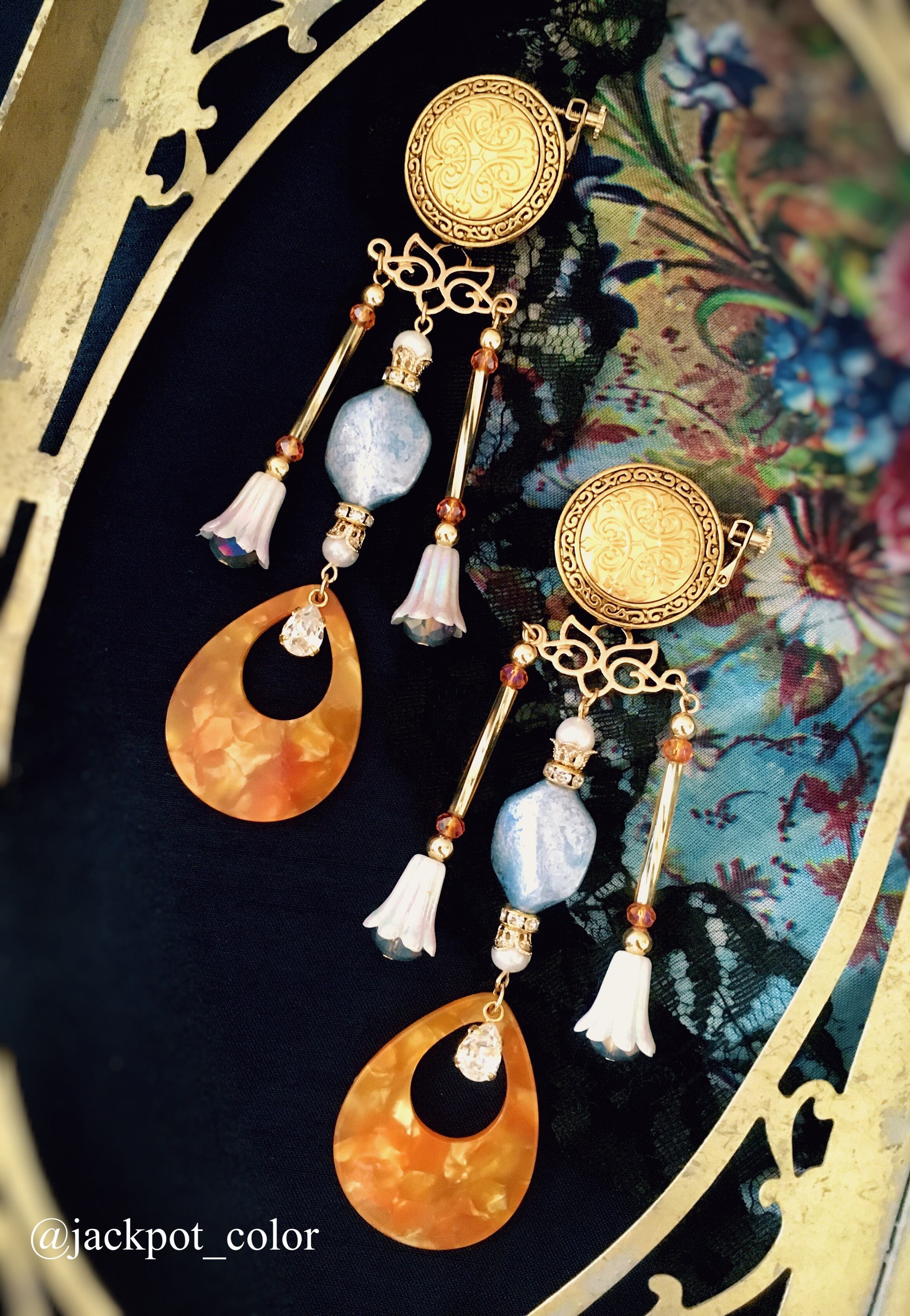 淤泥不染のイヤリング(ブルー×オレンジ)