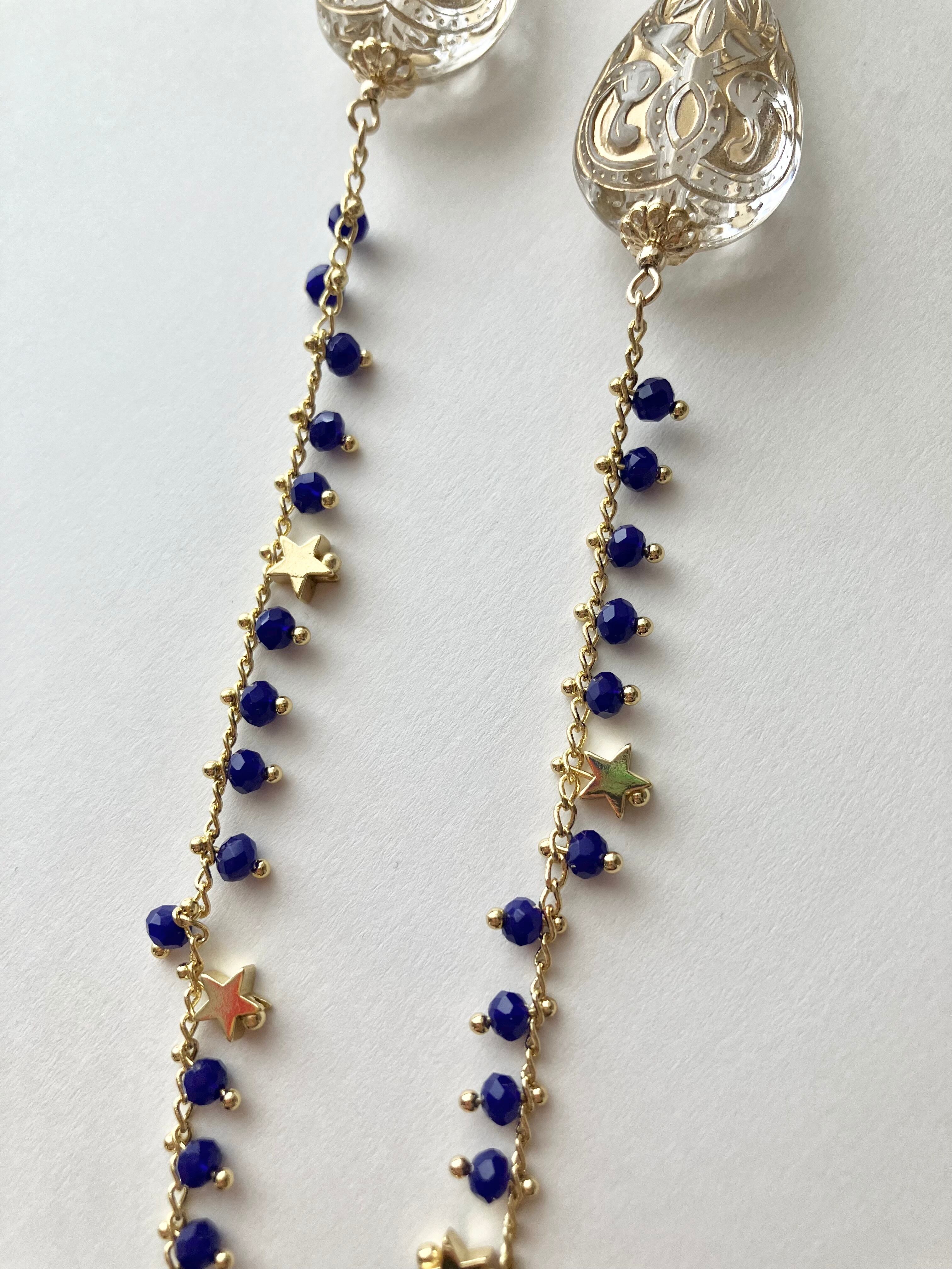 三日月や星などのモチーフにトルコブルーを織り交ぜたマルチチェーンです。