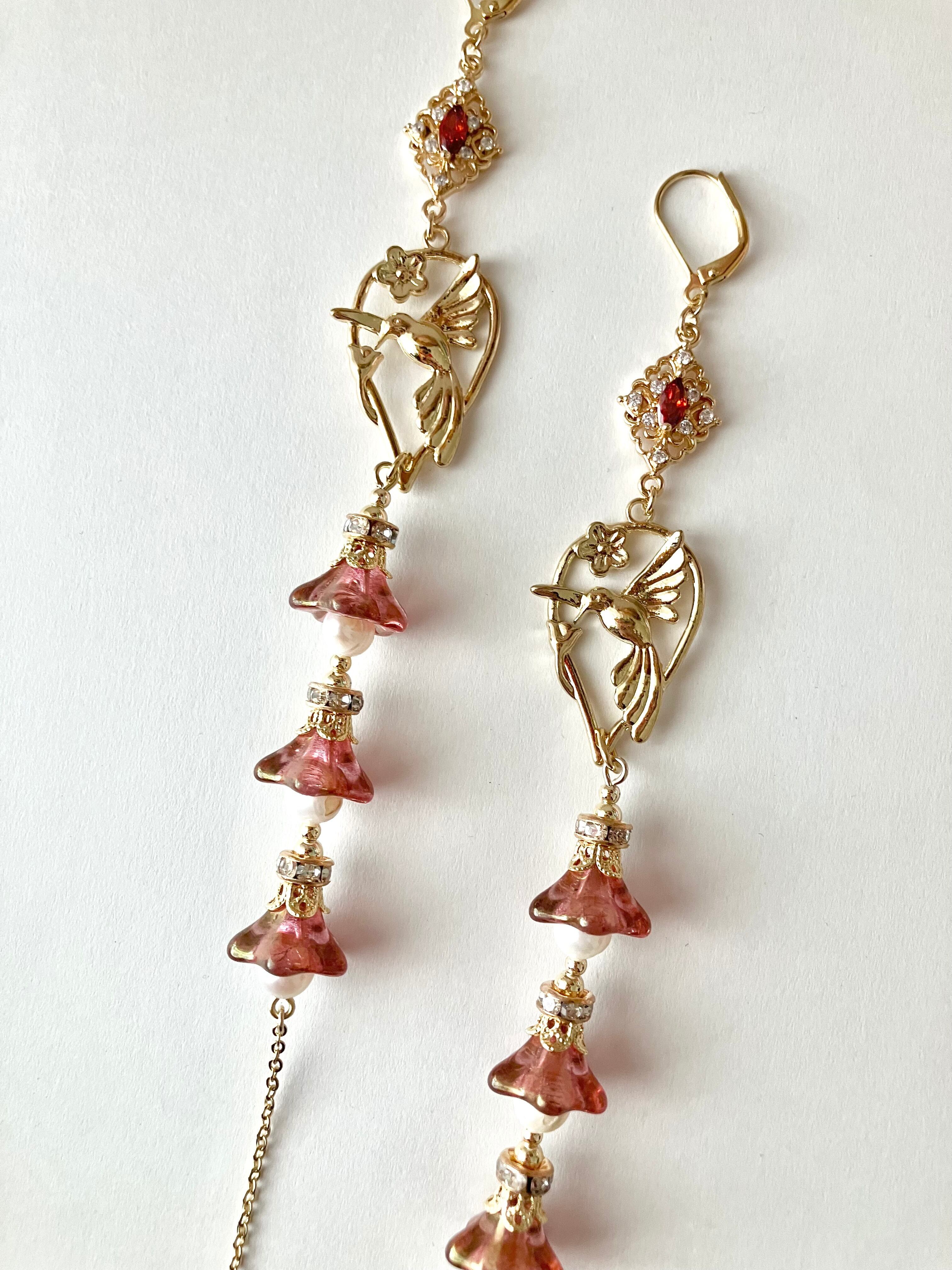 首にかかる部分は合金製の小判チェーンを使用し、耳飾りに見えるようなデザインに仕上げました。